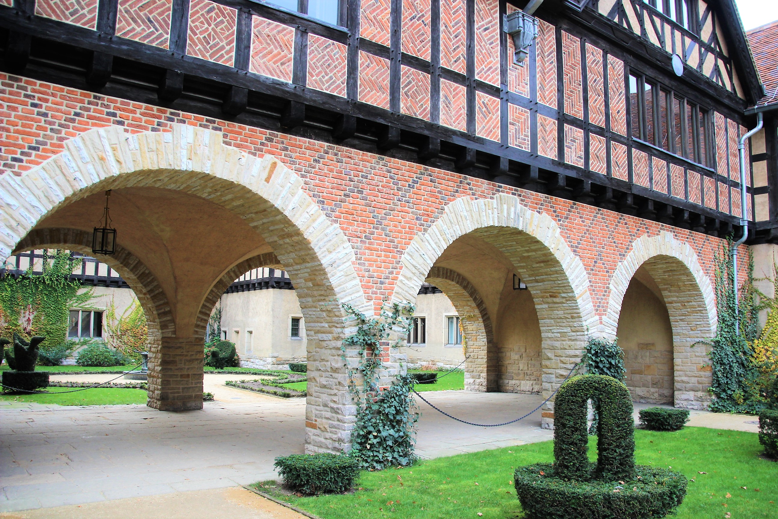 Если зайти в Новые сады через главный вход, то можно увидеть дома, построенные в голландском стиле. Во времена Фридриха Вильгельма II здесь находились конюшни и жилые дома для служащих