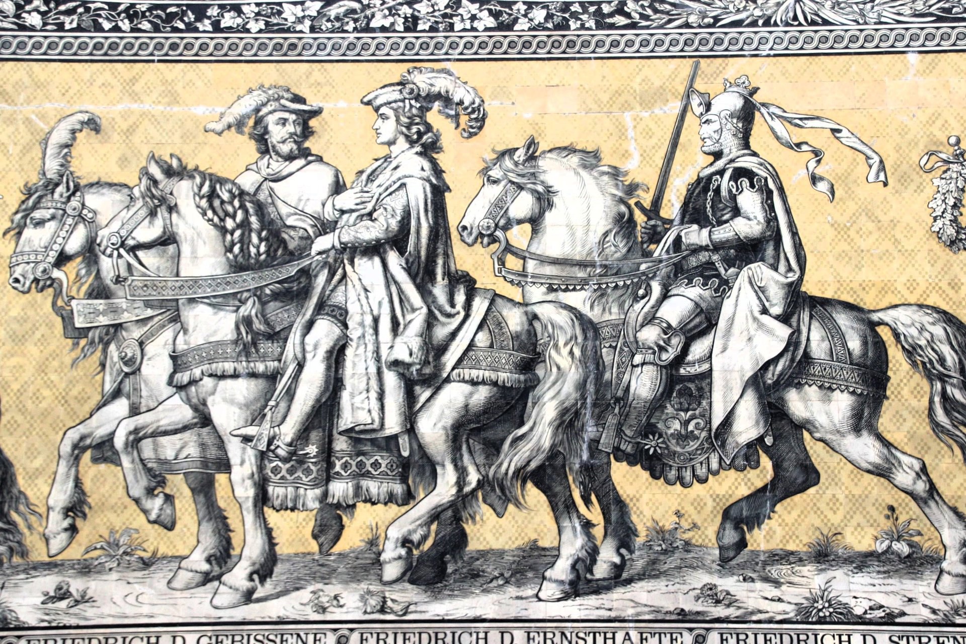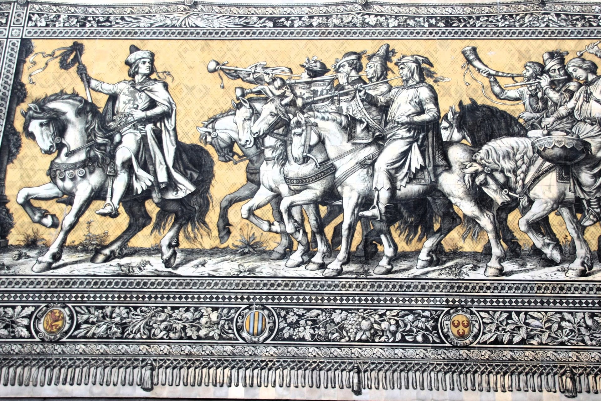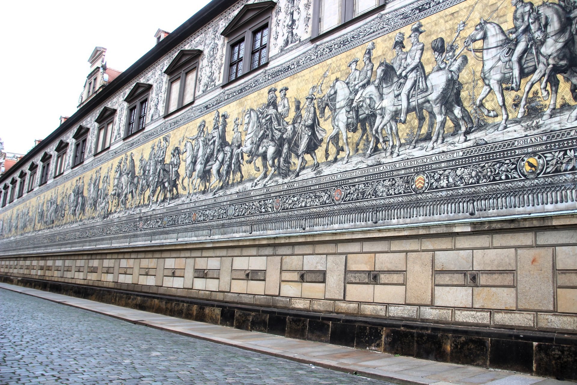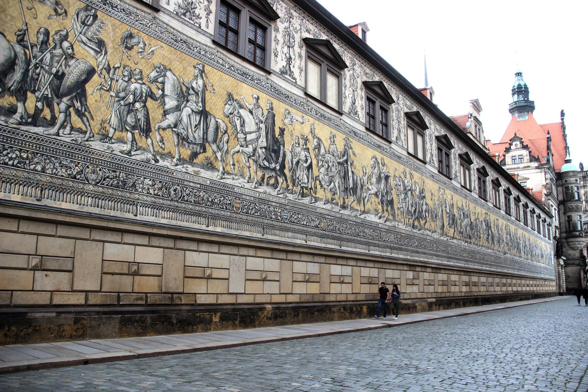 🌻🍁 В самом сердце старинного STAALHOF, где когда-то устраивались рыцарские турниры и бои, находится настоящая жемчужина Саксонии — FÜRSTENZUG. 💙 Это невероятное настенное панно длиной 101 МЕТР рассказывает историю правящей династии ВЕТТИНОВ, изображая их в виде величественного конного шествия. 🍁🐎
