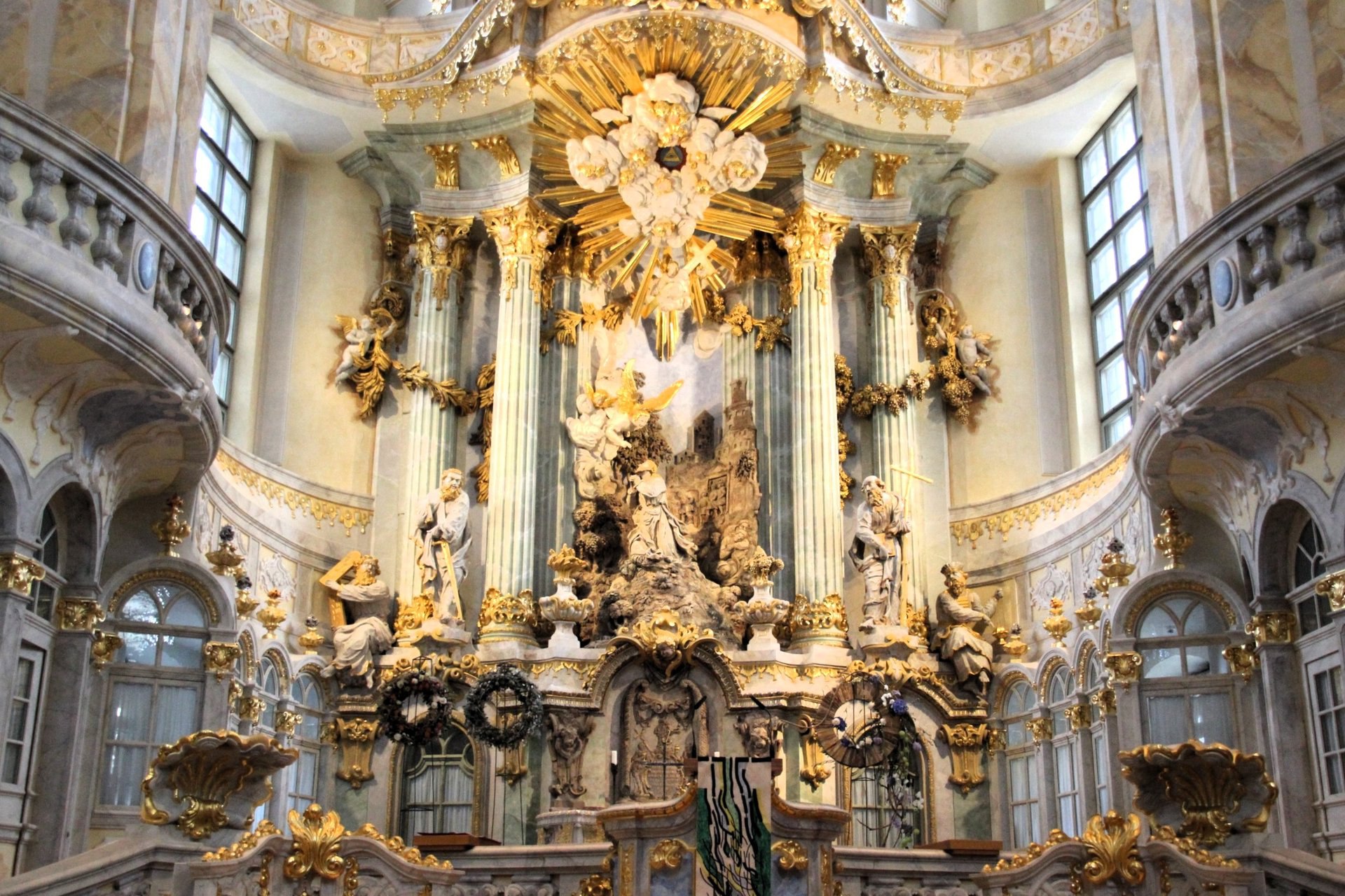 🎨 Внутри KATHOLISCHE HOFKIRCHE вас ждут настоящие произведения искусства! От алтарного полотна Антона Рафаэля Менгса до барочной кафедры Бальтазара Пермозера — всё здесь пропитано духом величия и искусства. А знаменитый орган Сильбермана всё ещё очаровывает слушателей своим звучанием. 🎶