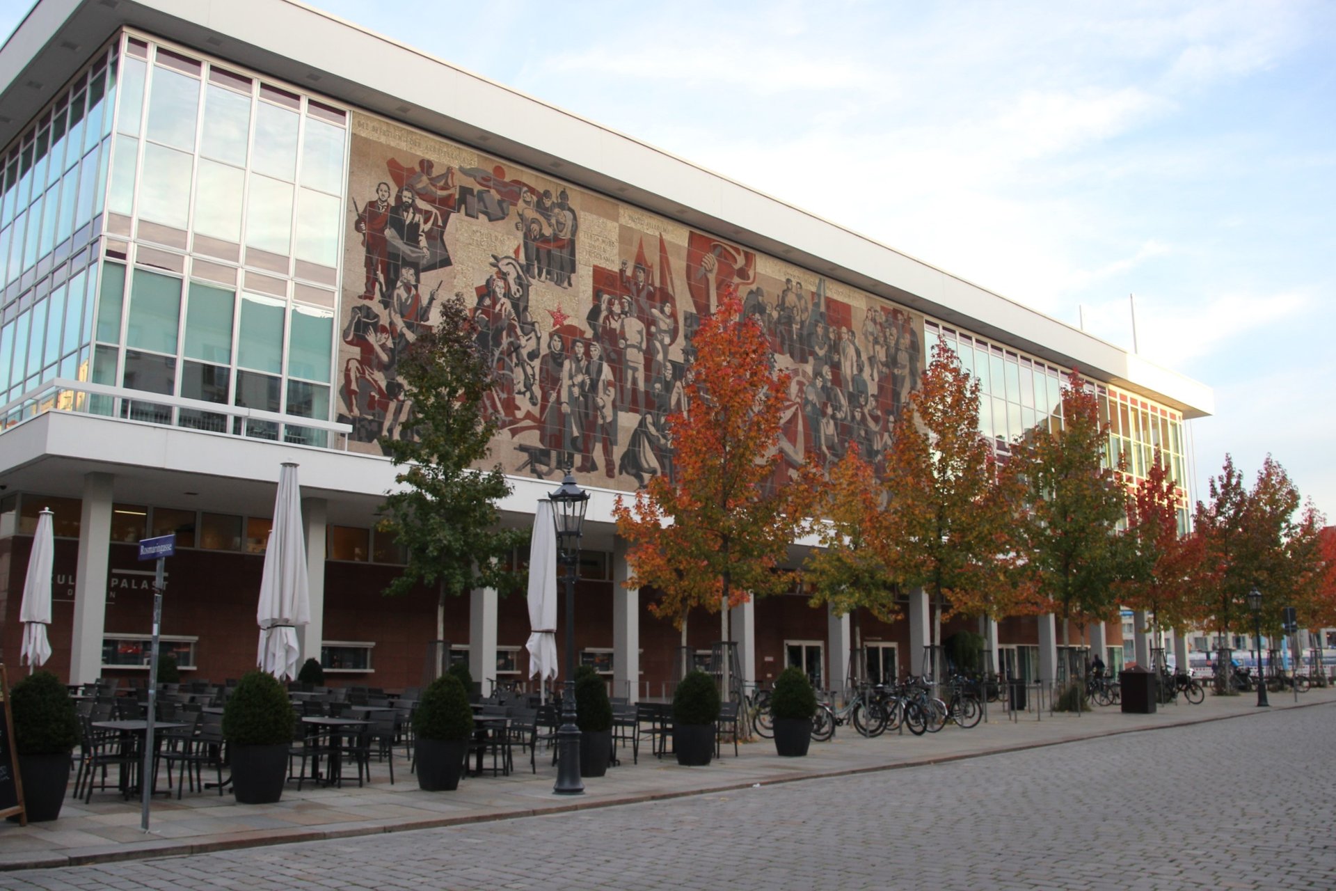 🌟 Пройдитесь вдоль Пражской улицы, где вы увидите множество новых фасадов и зданий, которые вдохнули новую жизнь в этот исторический район. Не упустите возможность заглянуть в Ufa-Kristallpalast, кинотеатр, получивший немецкую архитектурную премию в 1999 году! 🏆🎬 Этот шедевр, спроектированный архитектурным бюро „Coop Himmelb(l)au“, является ярким примером деконструктивизма, с его смелыми бетонными и стеклянными формами, контрастирующими с окружающими зданиями! 🌈🏗️