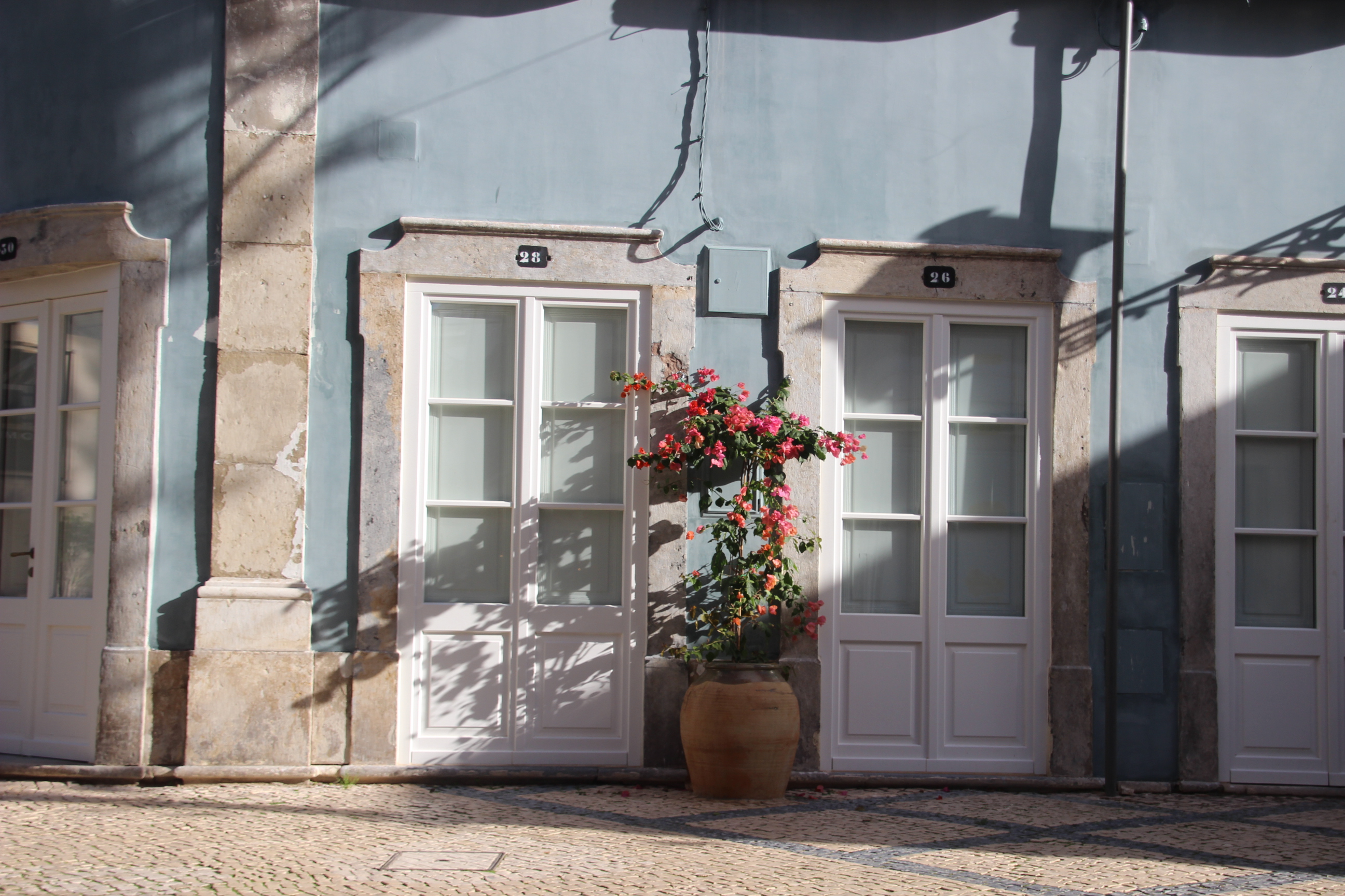 В Olhão даже обычные двери выглядят как часть архитектурной истории Algarve. Винтажные фасады, яркие цвета и декоративные детали превращают вход в дом в настоящий арт-объект. Такие двери — как визитная карточка улицы: с характером, фактурой и настроением. Потёртая краска и старые ручки только добавляют шарма и подлинности. Именно из таких мелочей складывается живой образ города. Хочется рассматривать и фотографировать каждую.
